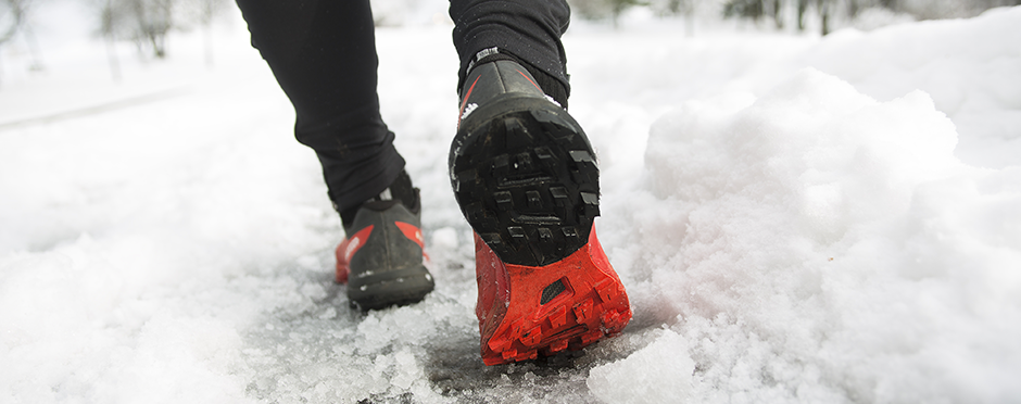 Invest in shoes or boots with good traction and non-slip soles. Bonus points if they’re waterproof and keep your feet warm and dry. Want to go the extra mile? Add slip-on ice cleats for a serious grip upgrade.