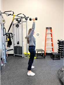 For each exercise that requires a dumbbell, athletes should select a weight that is light enough to perform at least 6 repetitions (reps), but heavy enough that completing more than 8 reps would be difficult with proper form. The ideal weight allows the athlete to perform 6-8 reps per set. Each exercise should be completed for 3 sets of 6-8 reps. With the practice of the following exercises, an athlete can increase their reps and weight over time as they gain strength. This method of training is known as progressive overload for increases in strength.